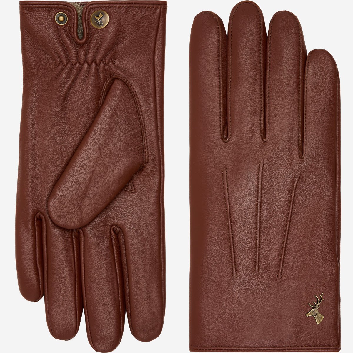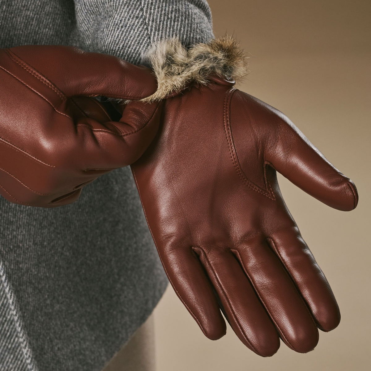 Alexander (bruin) – Herenhandschoenen van lamsleer met konijnenbont voering en touchscreen-functie