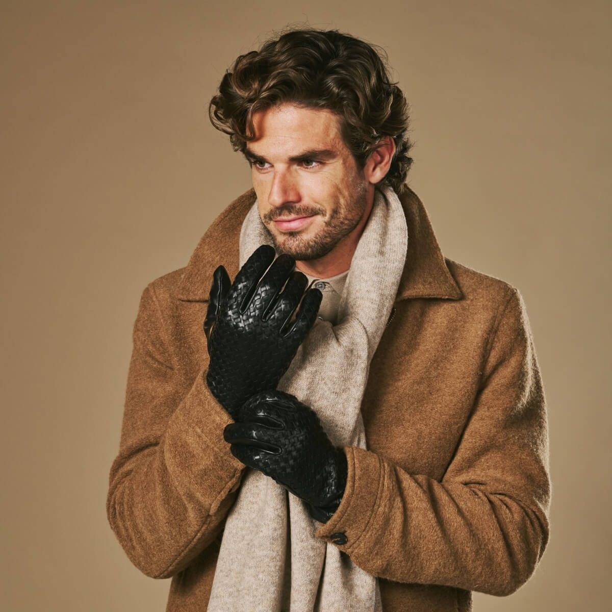 Frederick (zwart) – Heren handschoenen met basketweave-patroon, wollen voering en touchscreen-functie