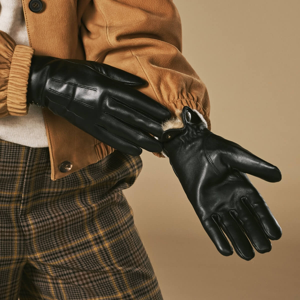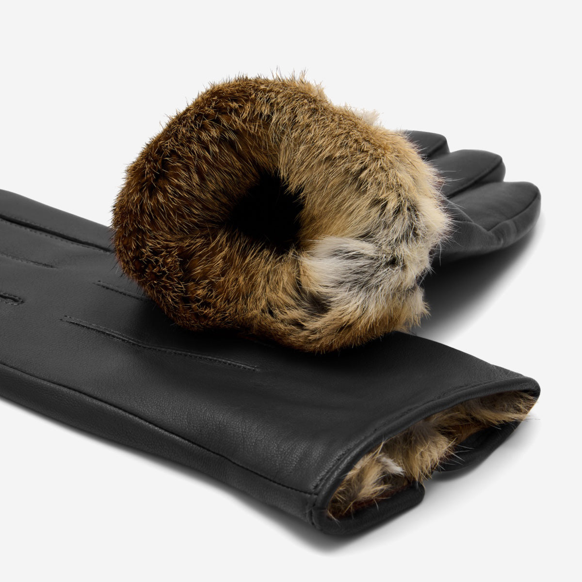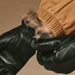 Jasmine (zwart) – Dameshandschoenen van lamsleer met luxe konijnenbont voering en touchscreen-functie