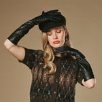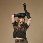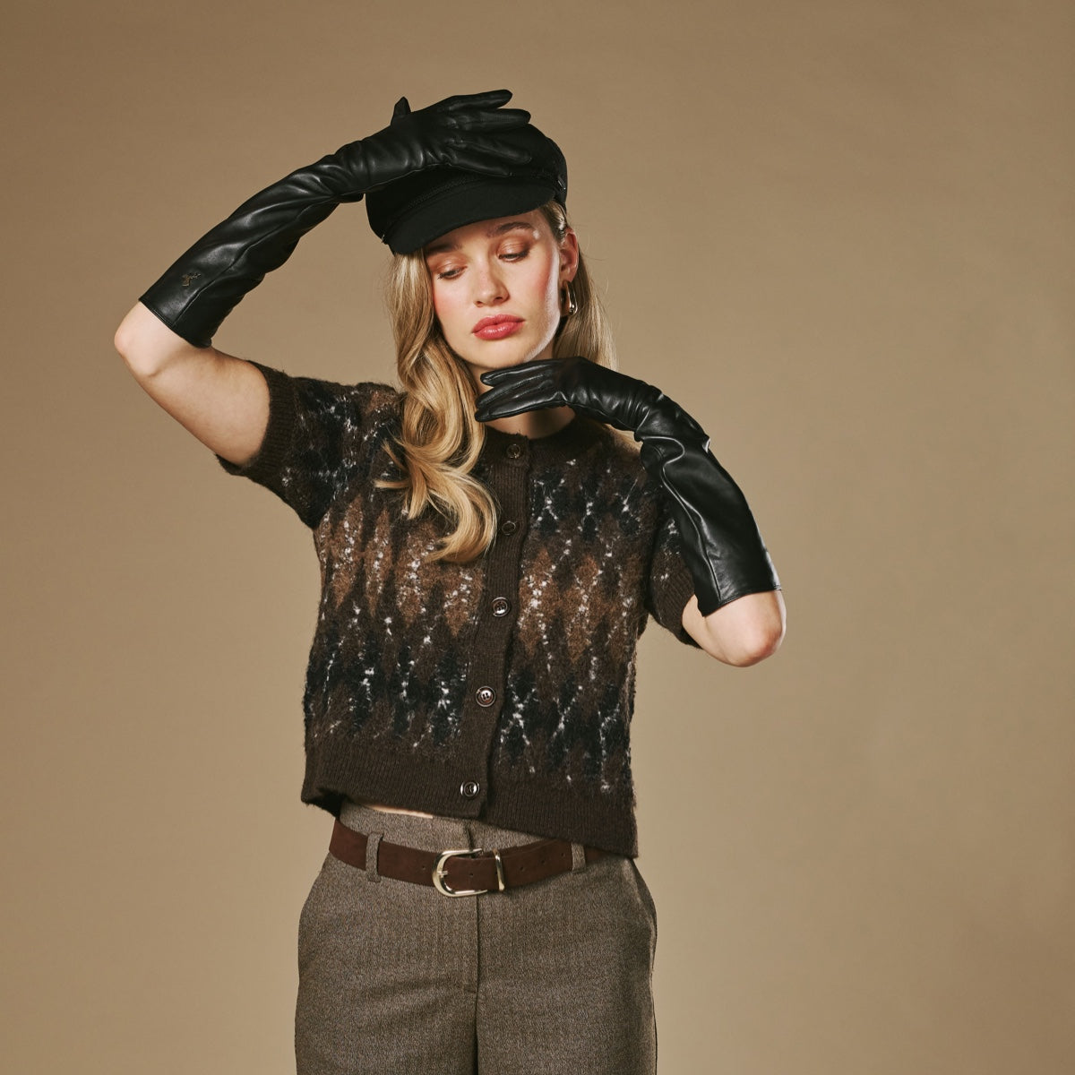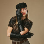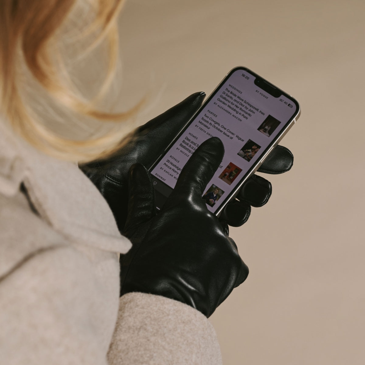 Rosemary (zwart) – Extra lange dames handschoenen van lamsleer met zijden voering en touchscreen-functie