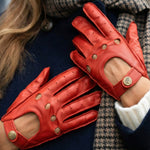 Alexis (rood) - Klassieke lamsleren autohandschoen met touchscreen-functie