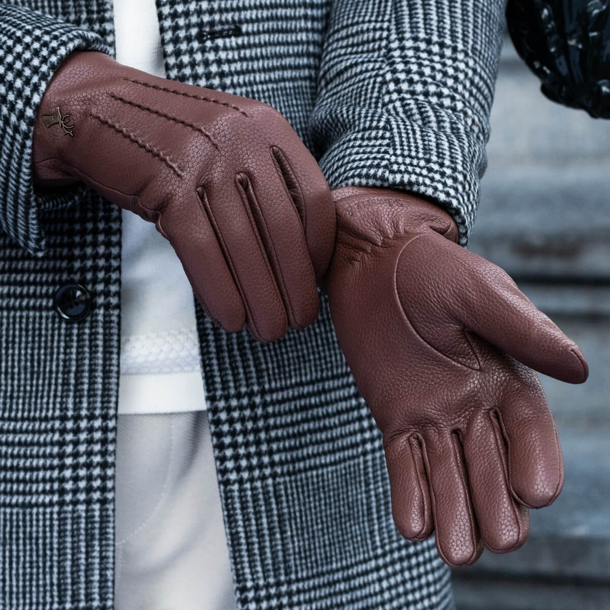 Hertenleer kenmerkt zich door zijn zachtheid, veelzijdigheid, en duurzaamheid. Omdat hertenleer erg soepel is, leent het zich uitstekend voor het maken van sterke en duurzame handschoenen. Naarmate het meer gedragen is, wordt het leer steeds zachter en begint de handschoen zich steeds meer te vormen naar je hand. In tegenstelling tot bijvoorbeeld runderleer, ademt hertenleer erg goed, waardoor je dus niet snel last zult krijgen van zweethanden.