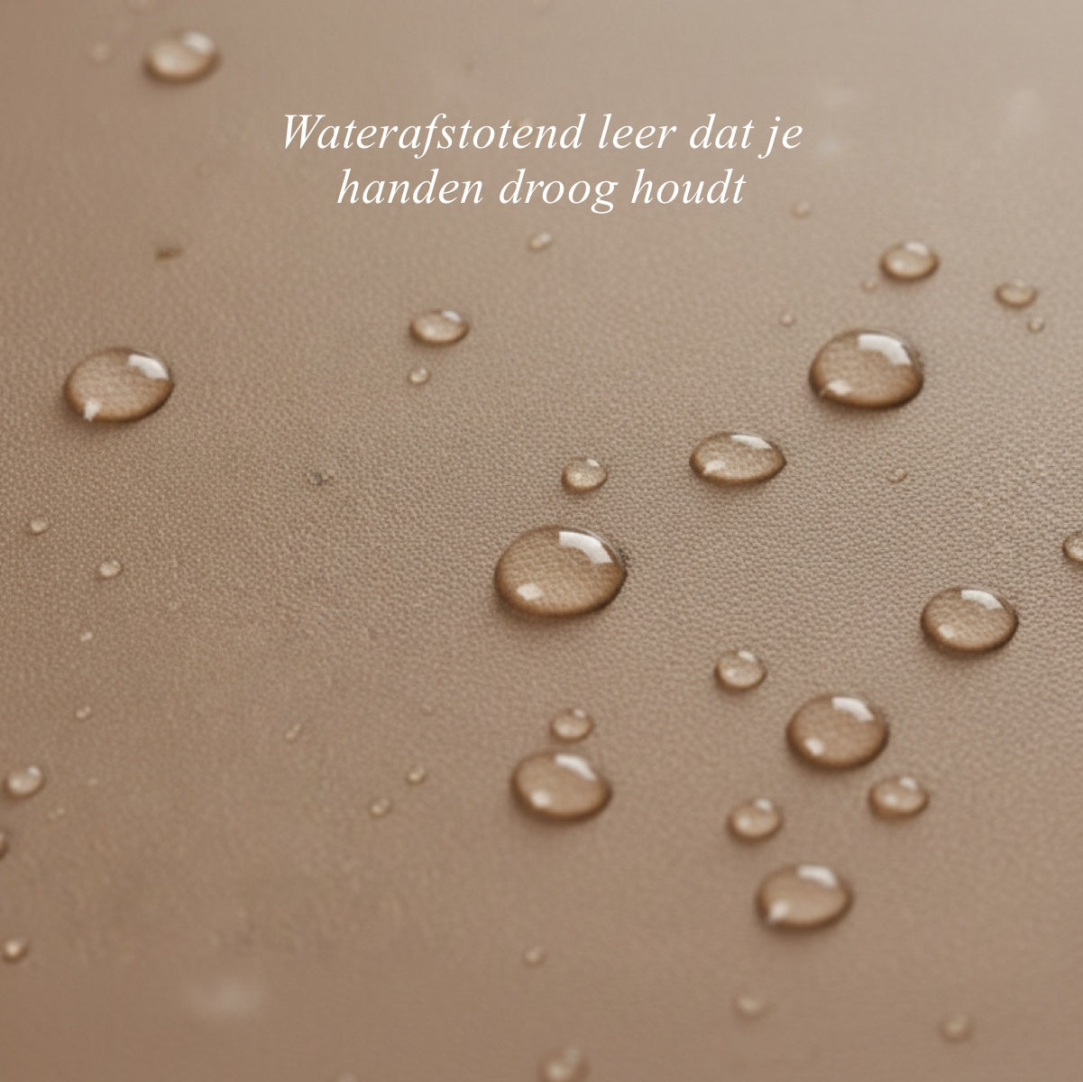 Leer: De handschoenen zijn gemaakt van 100% schapenleer (Nappa), dat geliefd is om zijn zachtheid, duurzaamheid en soepele textuur. Bovendien zorgt het Nappa leer ervoor dat de handschoenen 100% wind- en waterdicht zijn.