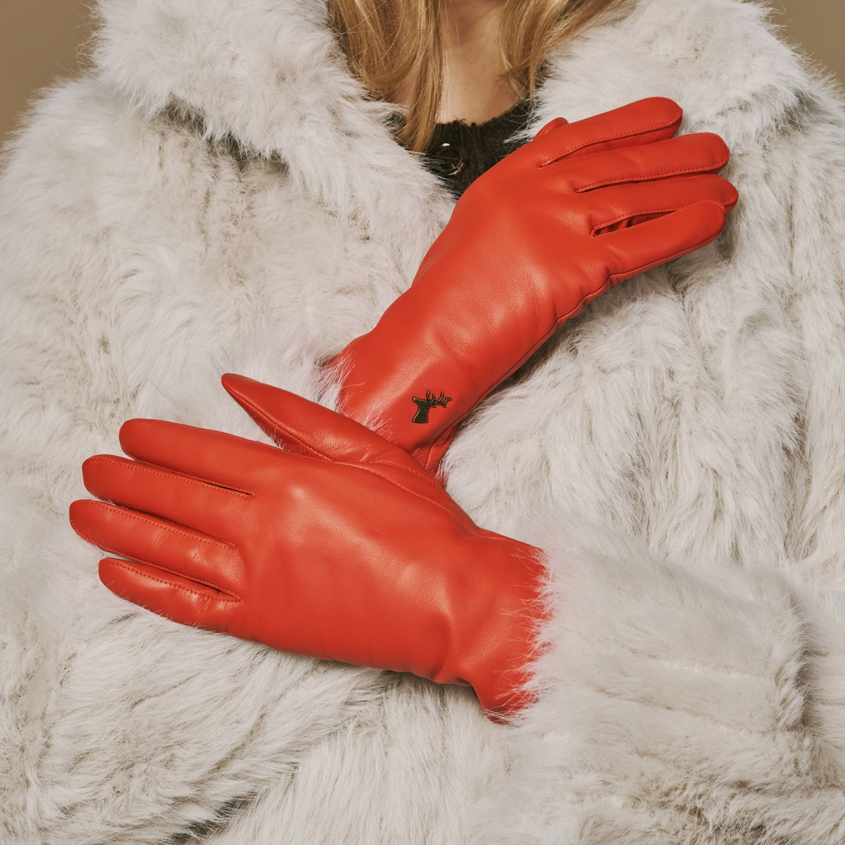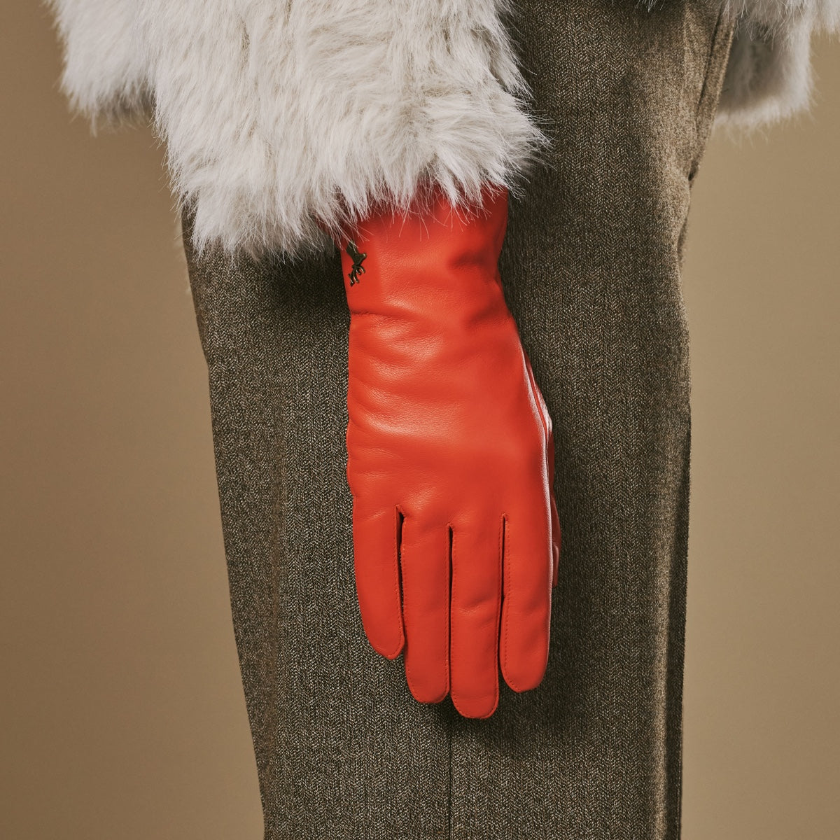 Ivy (oranje) – Dames handschoenen van nappaleer met kasjmier-wol voering en touchscreen-functie