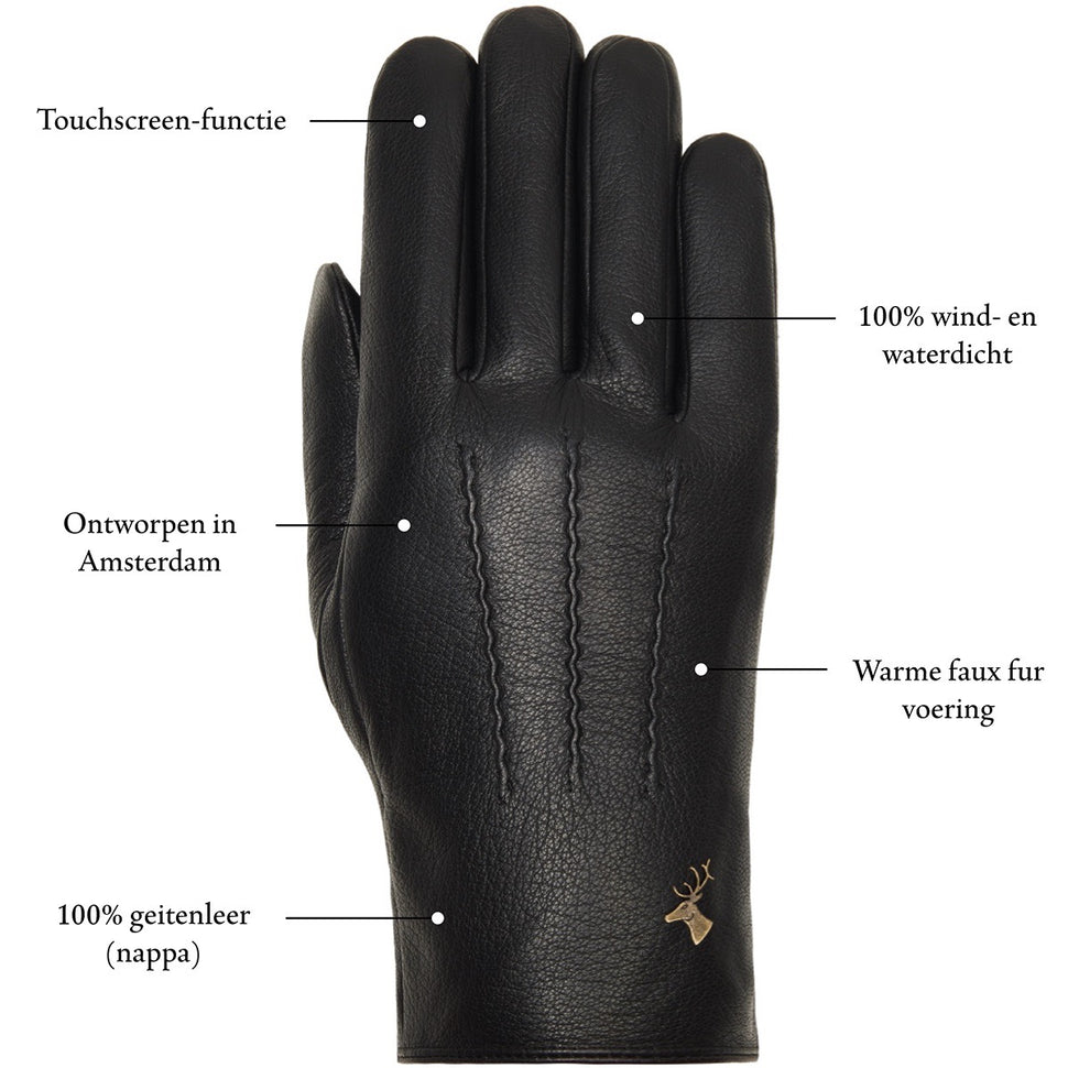 Jaxon (zwart) - Geitenleren handschoenen met luxe faux fur voering & touchscreen-functie