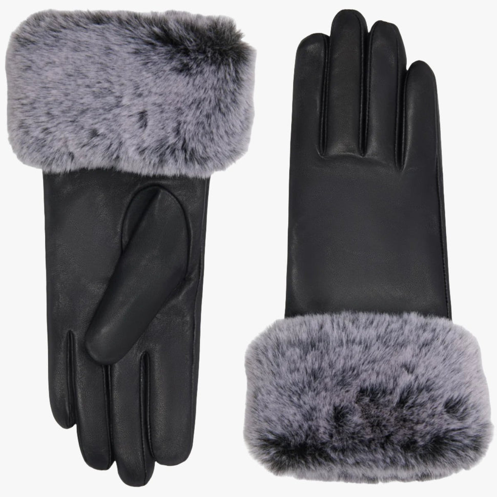 Vera (zwart) - Luxe leren handschoenen met faux fur bont bij pols & touchscreen-functie